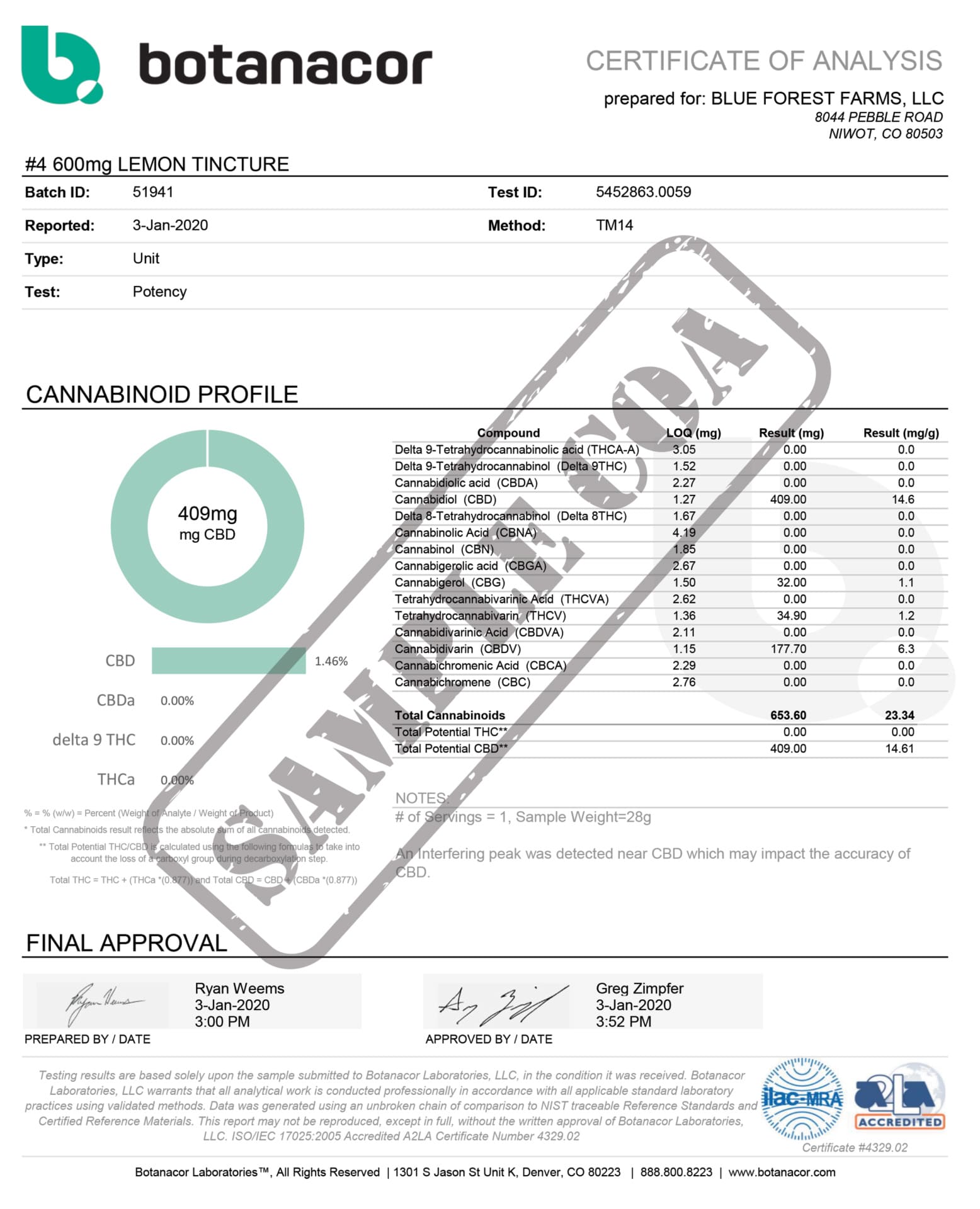 Above we’re looking at one of Blue Forest Farms lab tests and we’ll break down the vital information you should be looking for in these potency lab results.